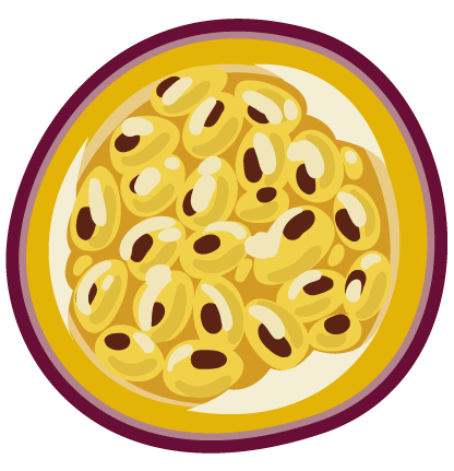 Es una fruta con un rico sabor. Una fruta de Maracuyá es rica en vitaminas A, B1, B2, B3, B9, C, E y vitamina K.